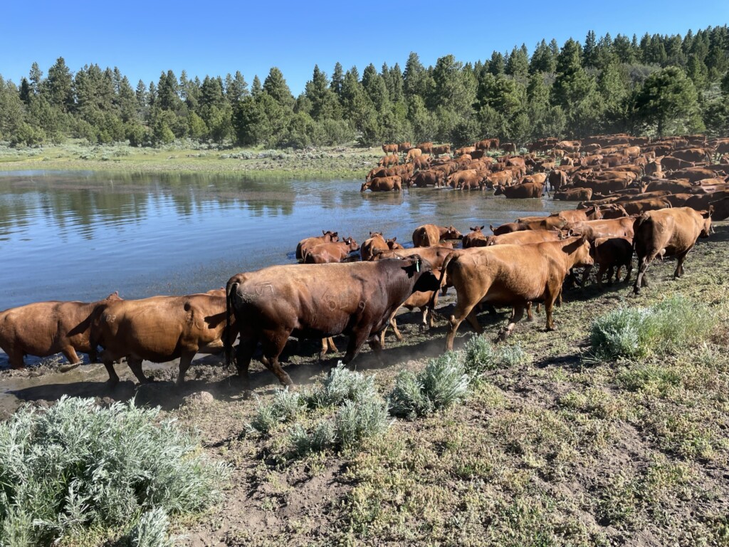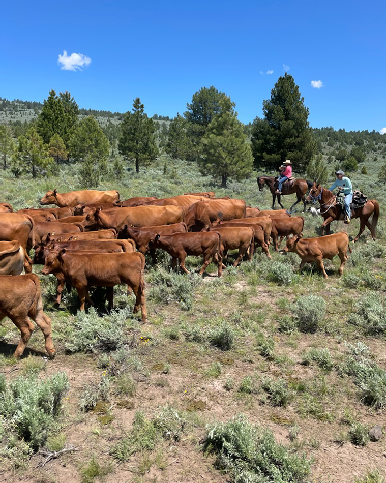Turning north off Highway 20, about 40 miles east of Burns, I pass through Drewsey, current population maybe 217. Located on the main stem of the Malheur River, it has a functioning post office, church, and elementary school (serving six students, give or take). Everything else—a boarded-up garage, store and tavern—suggests better times. But I’ve learned not to draw conclusions. Like so many rural outposts in southeastern Oregon, there’s more to Drewsey and the surrounding area than meets the eye. I continue on toward Otis Valley, navigating the long, lazy sweep of gravel miles leading up and out of the sleepy town, soon cresting a rise that opens to a show-stopping panorama: sage steppes, the Crowcamp Hills, creeks called out by aspen and willow, and jawlines of ridges outlined in ponderosa pine. In the distance I can just make out the silhouette of a tall entry gate marking my destination: Jeff and Sherri Hussey’s Otis Creek Ranch. When just about there, I catch sight of a lush green pasture polka-dotted by the couple’s Red Angus. The mother cows’ slick, claret coats and even configuration are testament to someone doing something right.
