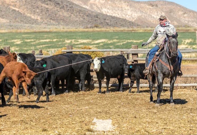 Cindy Holloway Hoagland grew up in and around Fields. The landmark Holloway Mountain is named after her homesteading ancestors. “I’m fourth generation,” says Cindy. “My grandmother was the first schoolteacher this end of Harney County.” As Cindy recounts in her autobiography, “Buckaroo Gal”, she was always by her father’s side. Much of her knowledge of and respect for the old ways of doing things she learned from him—such as building fence secured by rock jacks in the rocky desert soil. He taught her to ride as a small fry, fueling a lifelong love of horses. By her own account, she has “broke, saddled, schooled and rode hundreds of horses.” Rod jokes that when he proposed to Cindy, the idea of an engagement ring was quickly replaced with her request for a filly. The couple would become known for their handsome blue roan quarter horses. Another gift from her father was teaching Cindy to handle a rope. She quickly earned the reputation in the region as the girl who could, under any circumstance, finesse her long loop gently around the head of a horse, mother cow, or the heels of a calf.