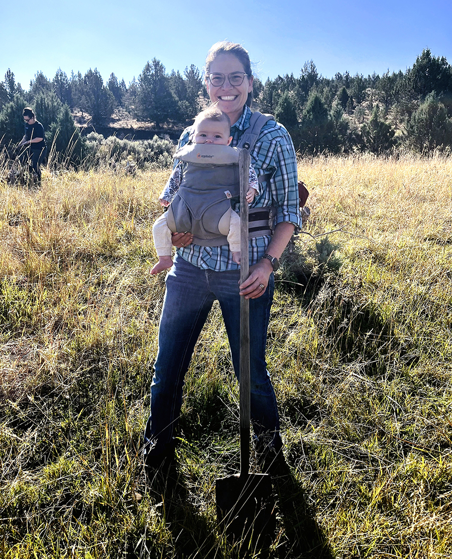 The lineup of footwear in the entryway says it all: hiking shoes, a pair of red cowboy boots, knee-high Wellingtons, trail runners next to miniature waders, tiny felt slip-ons, maybe a stray sock no bigger than your thumb. Entering the living room of this Redmond, Oregon, bungalow, colorful evidence of young children’s activities competes with stacks of what appears to be work-related reading. A generous window frames a view of a generous backyard, part of which has been successfully recruited for a large vegetable garden eagerly awaiting the return of spring. This is home base for Rachael Davee and Andrew Walch, the center ring for this young couple juggling their parallel passions for family and conservation work in Oregon’s high desert.
