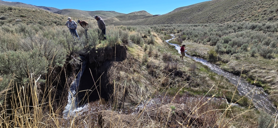 ODLT and TNC staff monitor a headcut on the upstream portion of Cottonwood Creek in April of 2024 for the 2.2-mile project. — Kharli Rose