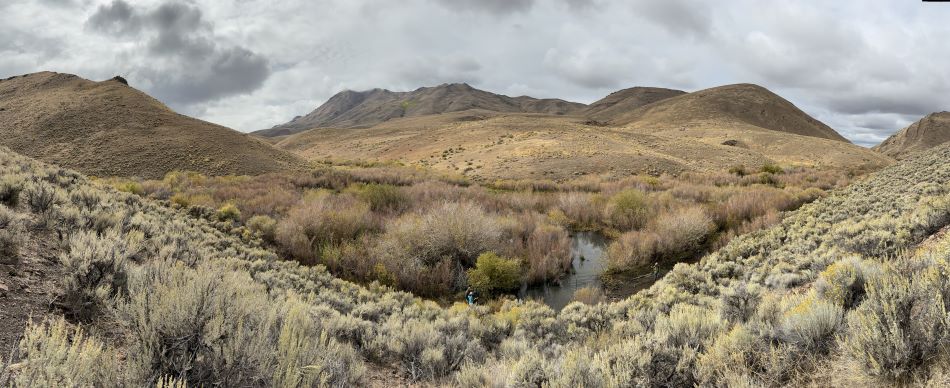 In 2022, we began on-the-ground work at Trout Creek Ranch. Since then, we’ve been busy developing and implementing management plans across nearly 17,000 acres of private land and 500,000 acres of public land grazing allotments. Trout Creek Ranch spans the Pueblo and Trout Creek Mountains. This dramatic conservation area covers nearly 800 square miles and provides climate-resilient habitat connectivity within more than one million acres of intact high desert landscapes that stretch from the Sheldon National Wildlife Refuge to Steens Mountain Wilderness. It includes grasslands, aspen woodlands, creeks, wet meadows, and sagebrush-steppe. Water is critical to the desert landscape and we’re focused on protecting and restoring key springs, wetlands, and streams across the project area.