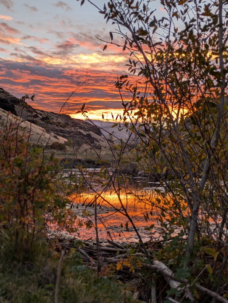 Feature image: A sunset in the Trout Creek Mountains is reflected within a beaver pond in the downstream section of the 2.2 mile Cottonwood Creek Project. — Owen Baugman